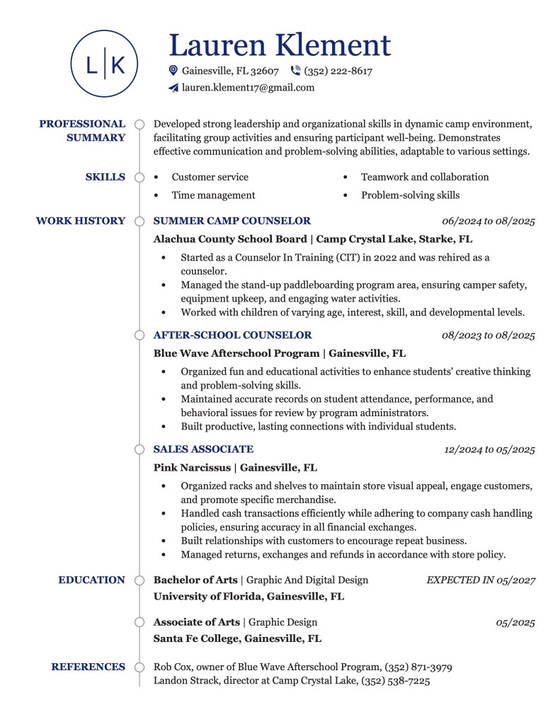 Previously, Lauren obtained her Associate of Arts at Santa Fe College. She now attends school at the University of Florida and is pursuing a Bachelor of Fine Arts in Graphic Design. Lauren hopes to attain a career in visual communication by contributing to projects that support engagement and make complex concepts clear through design.